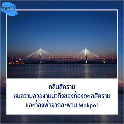 ช่วงฤดูใบไม้ผลิที่อากาศสดใสแบบนี้ ชวนมาสัมผัสความงามของสีฟ้าจากท้องทะเลและท้องฟ้าที่มาบรรจบกันอย่างลงตัวเหนือ สะพาน Mokpo การได้มายืนชมวิวบนสะพานแห่งนี้ มองเห็นผืนน้ำสีครามทอดยาวไปจรดเส้นขอบฟ้า เป็นภาพที่น่าประทับใจและรู้สึกสดชื่นมากๆ เป็นอีกหนึ่งมุมสวยๆ ในมกโพที่ไม่ควรพลาดเลย